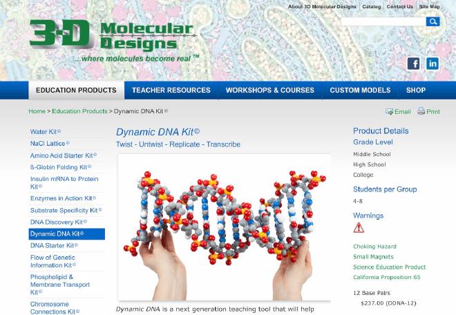 3D Molecular Designs offers 3D printed models of proteins and other molecular structures. Educators might be interested to illustrate biomedical concepts with physical objects that students can manipulate with their hands.