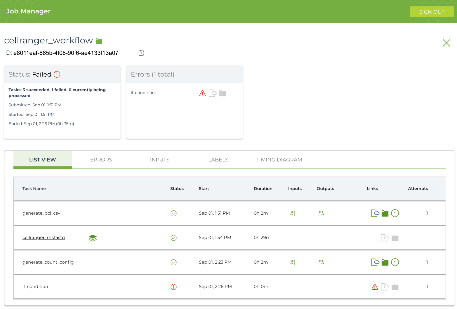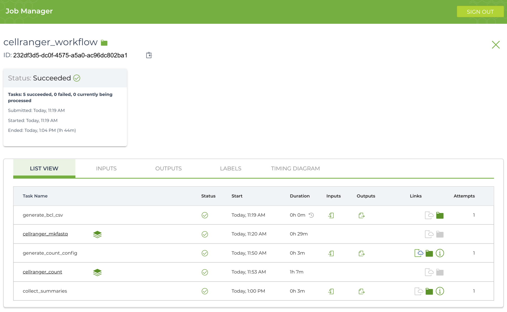 Suppose we launched a workflow called cellranger_workflow that invokes the