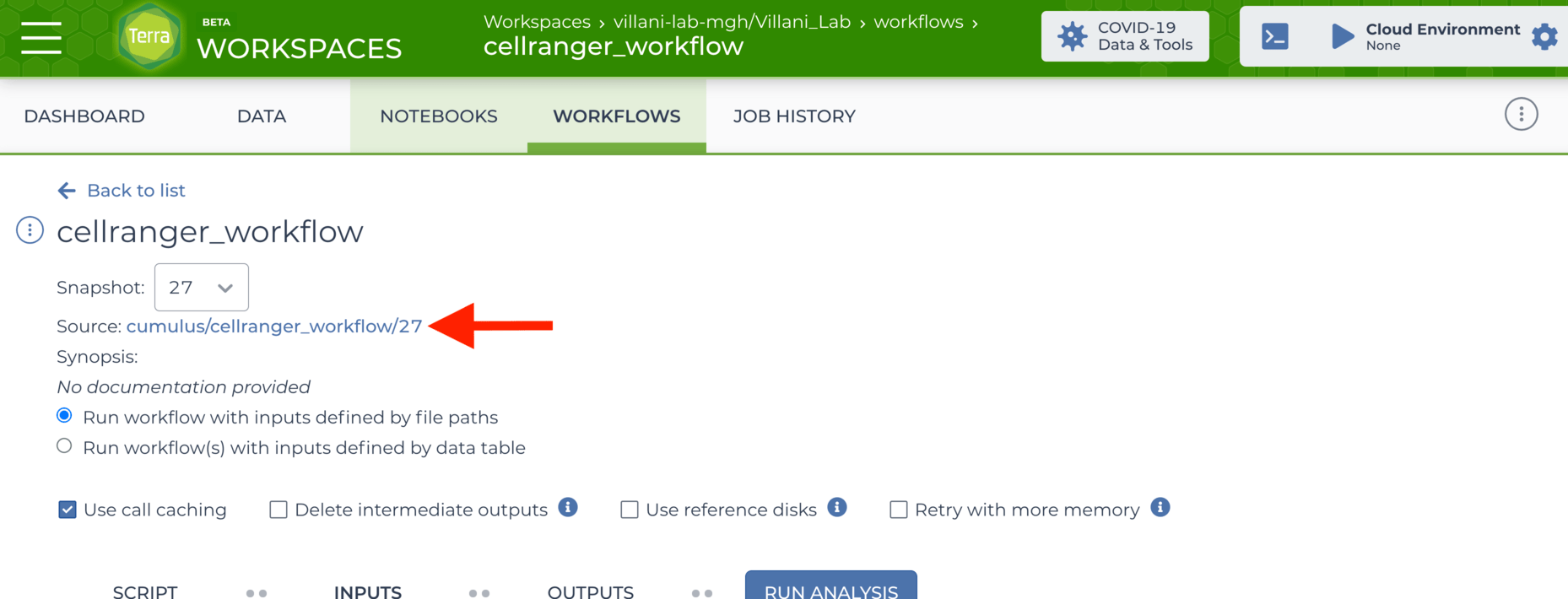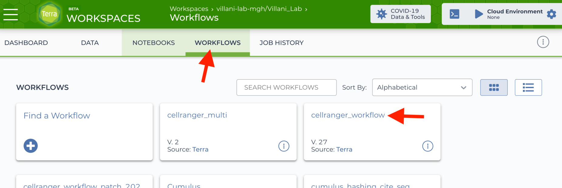In Terra, click WORKFLOWS to get to this page and click on the relevant workflow: