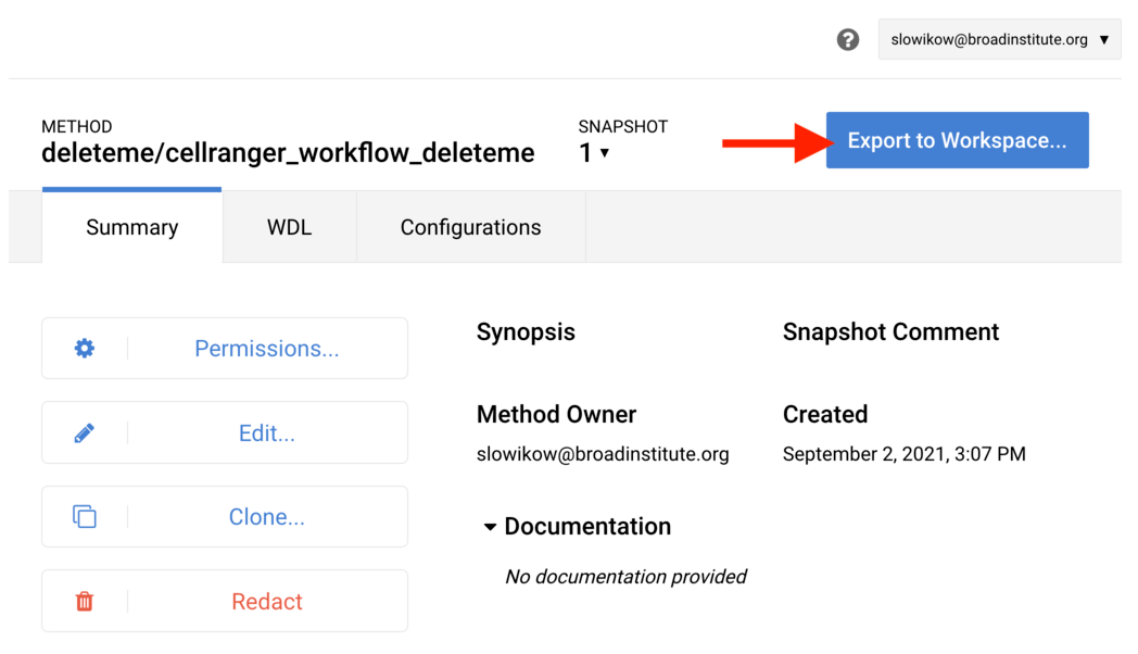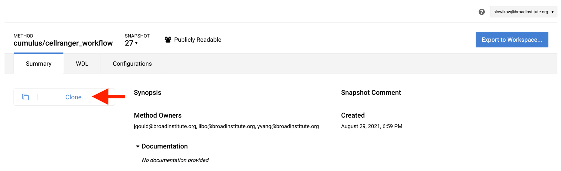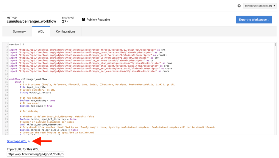 We’ll be redirected to a site called portal.firecloud.org that hosts the source code for the workflow: