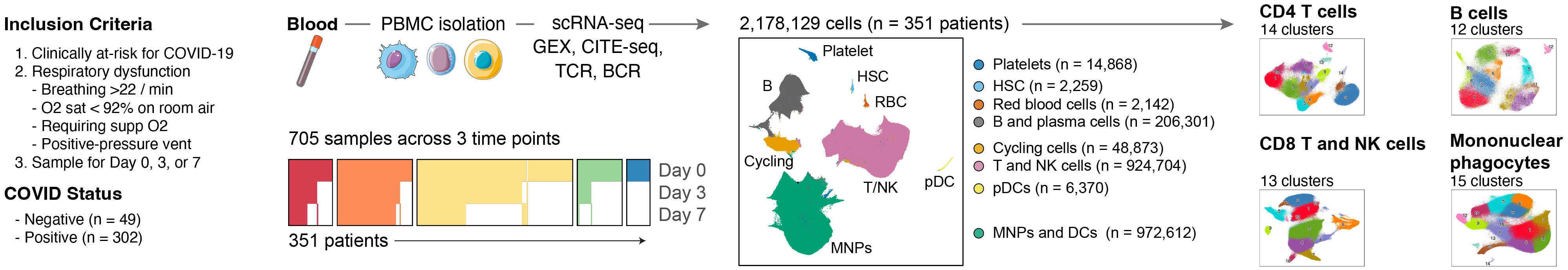 The alpha-variant wave of the COVID-19 pandemic provided a unique opportunity to study, at single-cell resolution, how near-universal exposure to the same pathogen can lead to either effective or dysfunctional immune responses in humans. Although single-cell RNA-sequencing studies have characterized immune cellular features of COVID-19, they have not shown how tocilizumab treatment changes these features at single-cell resolution, or which features might persist into convalescence. In this study, we analyzed 2.5 million circulating immune cells from 428 patients across time points (840 PBMC samples), encompassing three contemporaneous SARS-CoV-2 cohorts: acutely infected patients across five WHO disease severity levels and three time points, patients from the first randomized control trial to study the efficacy of tocilizumab in the management of COVID-19, and convalescent patients three months after infection. We used linear modeling to integrate multiple data types – including single-cell RNA-seq, CITE-seq, TCR and BCR sequencing, viral load measurements, viral neutralization assays, detection of 75 autoantibodies, HLA genotype data, and serum proteomics covering 1,463 targets – to derive the most comprehensive view to-date of the biological features of COVID-19 disease severity. Our findings show that myeloid-derived suppressor cells (MDSCs) act as a key immunologic pivot point in severe COVID-19. Myeloid dysfunction, which is marked by impaired antigen presentation, drives a non-productive adaptive immune response, as reflected by reduced expression of B and T cell gene programs involved in antigen recognition, immune synapse formation, and cytotoxicity. Severe disease is also linked to autoantibodies targeting type I interferons, influenced by specific HLA-DQB1 allelic variants, and strongly correlated with serum IL-6 levels. Tocilizumab treatment eliminates CLU-expressing MDSCs and ISG-positive myeloid subsets, restores antigen presentation, and reactivates productive adaptive immunity. These changes align with improved clinical outcomes and better clinical laboratory measures, including reduced CRP. While many immunologic abnormalities in acute severe COVID-19 resolve during convalescence 3-months post-infection, we observed persistently high ICOS expression in regulatory T cells, potentially linking acute infection to chronic post-COVID syndromes. Overall, we define distinct innate and adaptive host immune responses associated with acute, IL-6–responsive, and convalescent SARS-CoV-2 infection. Our multimodal and high-dimensional dataset with curated clinical metadata provides a foundational and clinically relevant resource for modeling host immune response biology in health and disease.